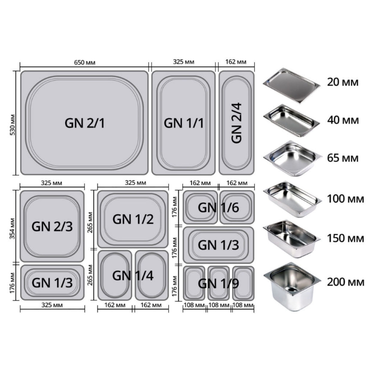 | Глубина гастроёмкости, мм | 150 |